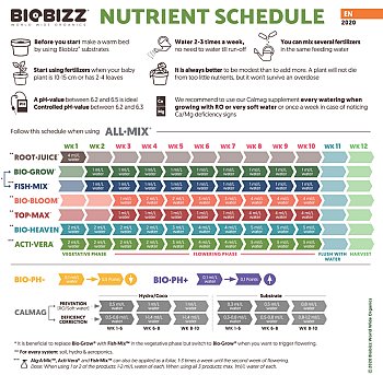 Biobizz odporúča približne 2-4 ml Bio·Bloom na liter vody. Konkrétne dávky na každé obdobie nájdete v dávkovacej tabuľke Biobizz.