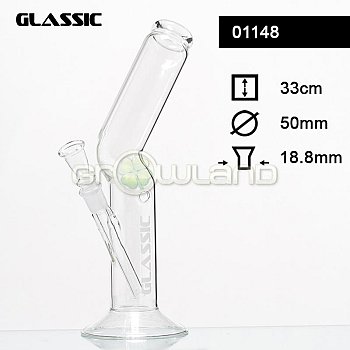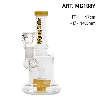 Sklenené bongo s menšou bankou. Výška: 16 cm.Priemer hrdla: 2,2 cm