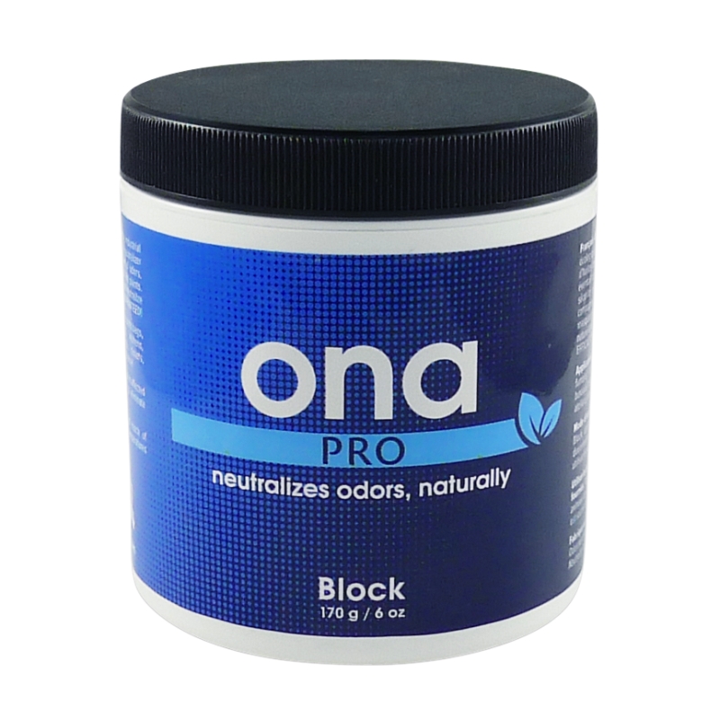 ONA BLOCK PRO, ideálny pre malé priestory, ako sú pestovateľské skrine do 2 m3. Otvorte vrchnák odstránte ochrannú fóliu alebo do nej urobte malé otvory a postavte ho všade tam, kde chcete neutralizovať pachy. Z bloku je možné časť odrezať a umiestniť tam kde je to potrebné. Oproti gélom má tú výhodu, že block nie je nutné premiešavať raz za 2-3 dni.