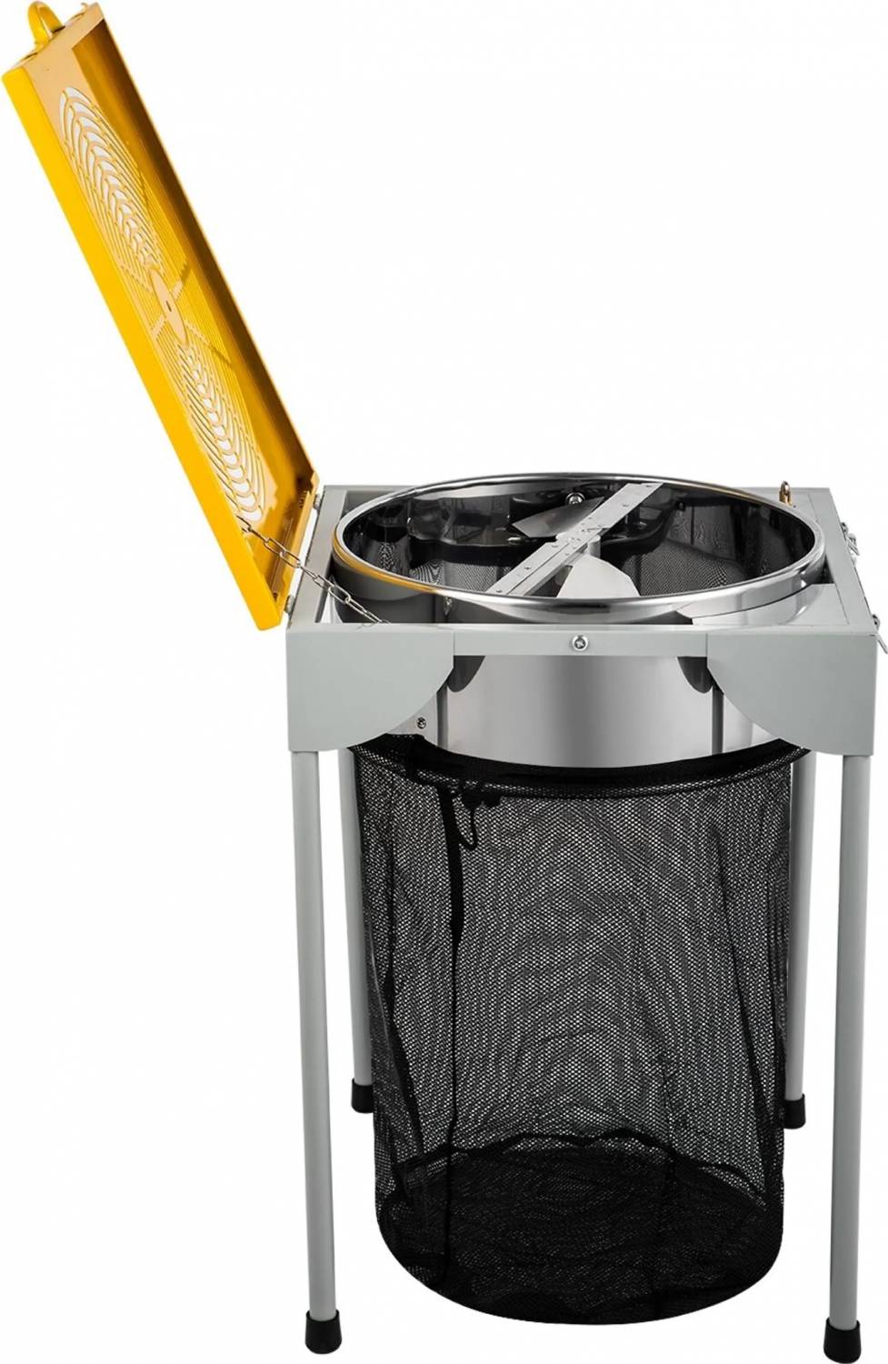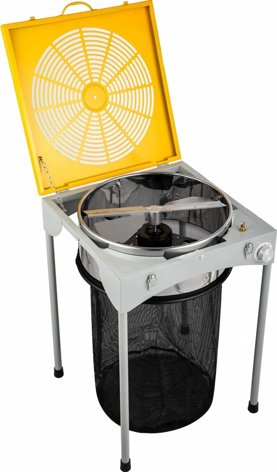 Stolový vyžínač má bezpečnostný systém, ktorý zabraňuje chodu nožov, ak je mriežka otvorená.