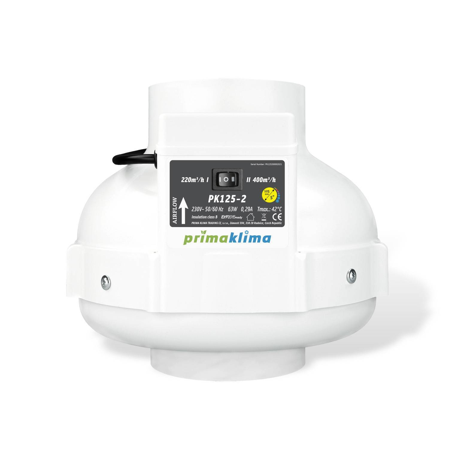 Dvojrýchlostný radiálny ventilátor Prima Klima s prietokom vzduchu 225 a 400 m3/h. 230V,50Hz, príkon 45/65 W, priemer prípojky na hadicu 125 mm maximálna teplota vzduchu 45 ºC ... zobraziť viac